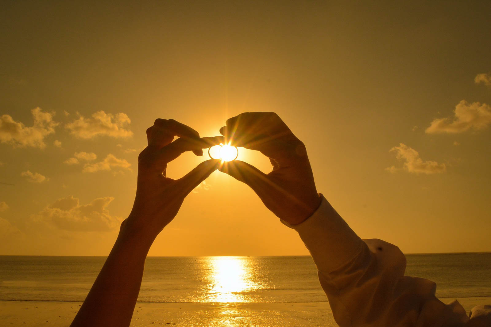 キラキラの太陽に指輪をかざすショット。夕日が綺麗に見えたらぜひ挑戦してみて✨