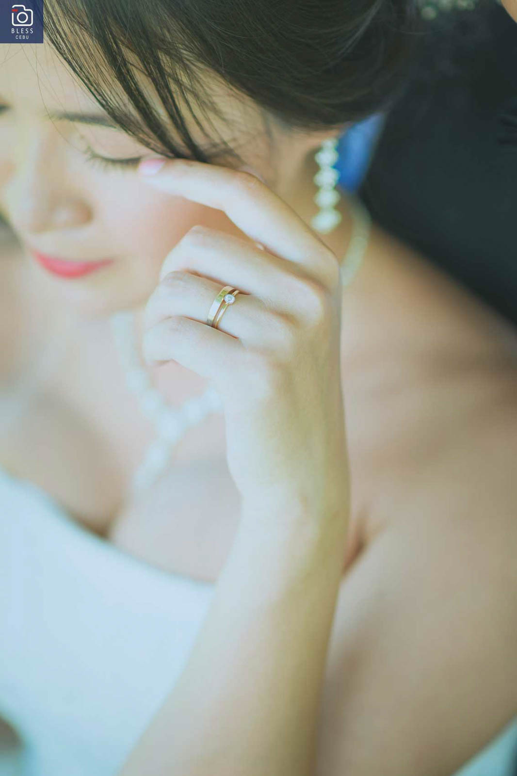 花嫁様のさりげない仕草と横顔。自然と指輪に目がいくショットです。