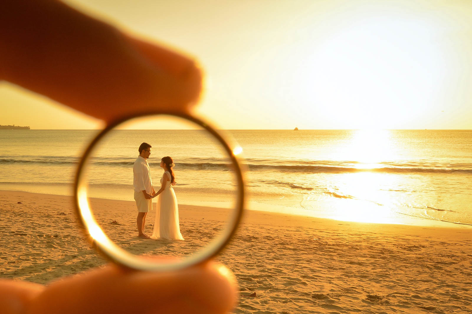絶対に記念になる、ちょっと面白いショットに挑戦してみたい方へ。カメラマンが遠近法のテクニックを使って、キラキラの指輪をフレームにしてしまいますよ。