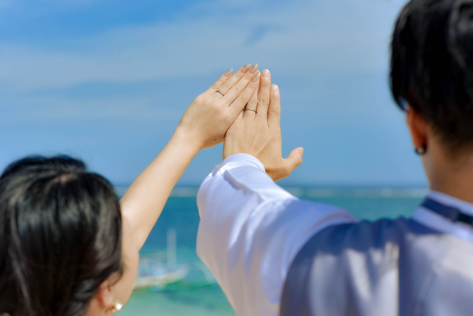 ビーチを背景にした手元のリングショットや、波打ち際でのジャンプショットは、海外ウェディングフォトならではの思い出になります。自然光に包まれたお二人の笑顔が、まさにバリ島の魅力を詰め込んだ瞬間でした。