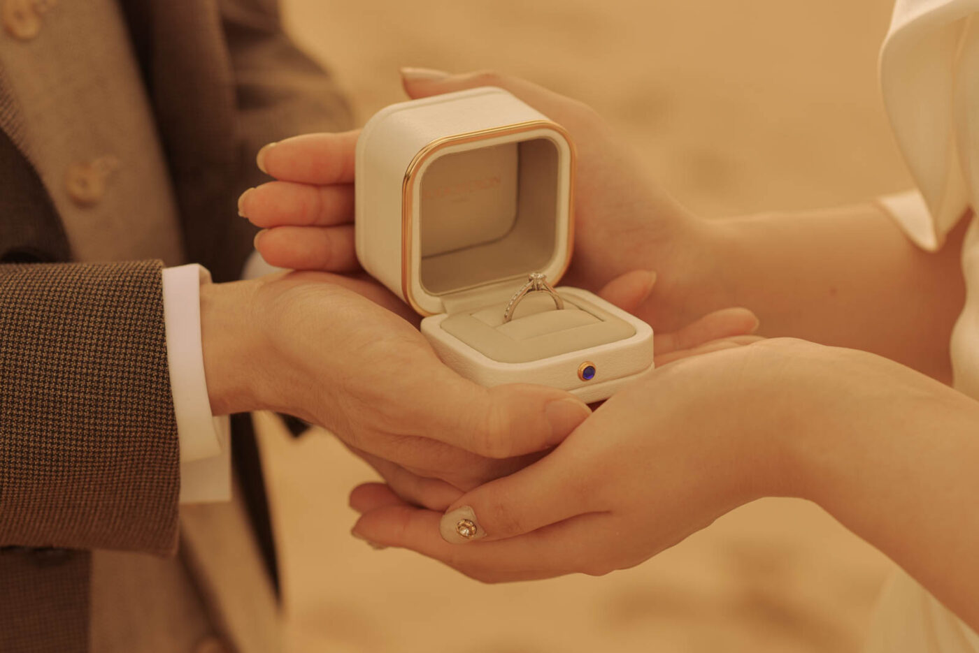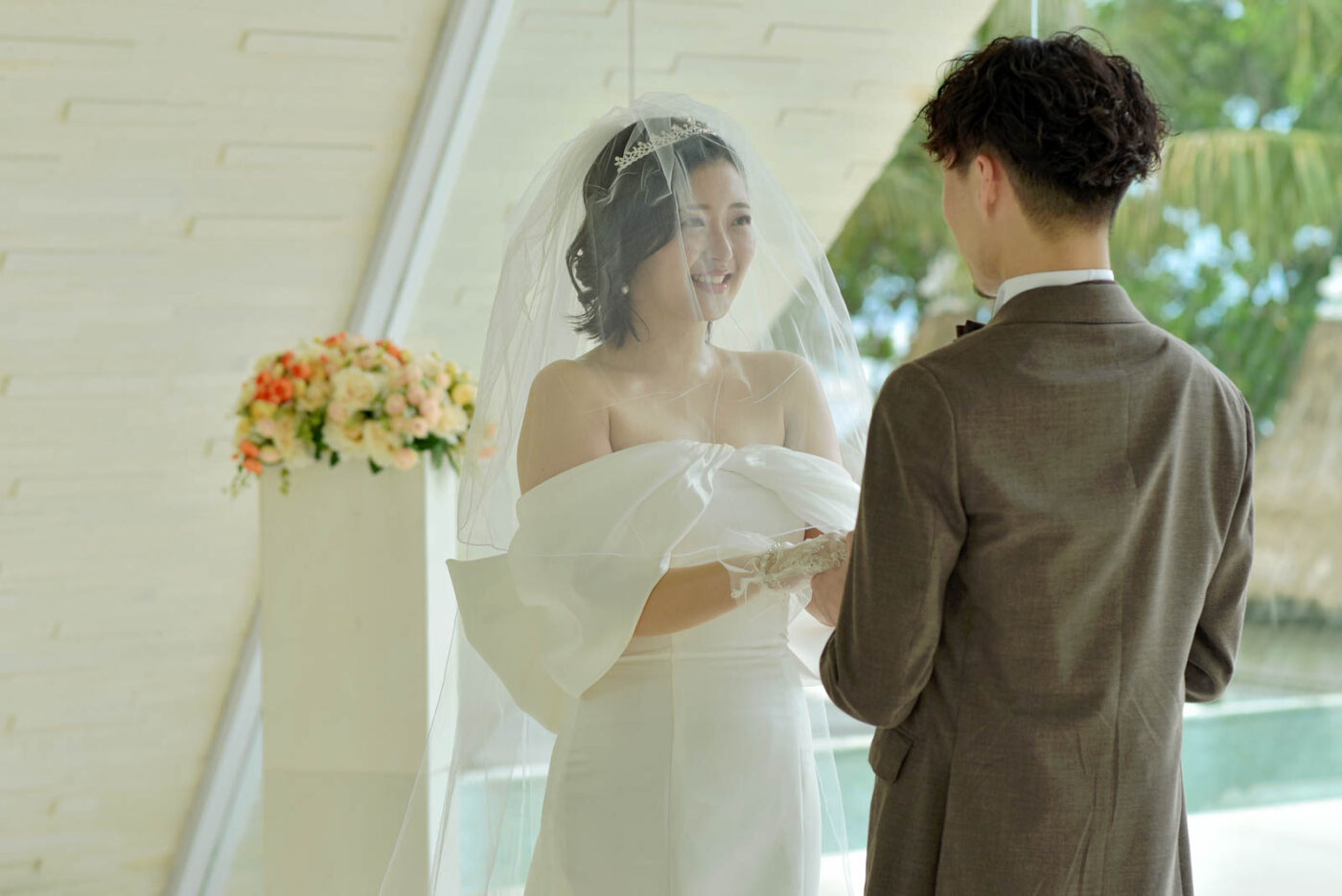 特に印象的だったのは、リングケースを手に取り誓い合うシーンや、ベール越しに見つめ合うカット。小物のディテールを大切にした撮影が、感動をさらに深めてくれました。