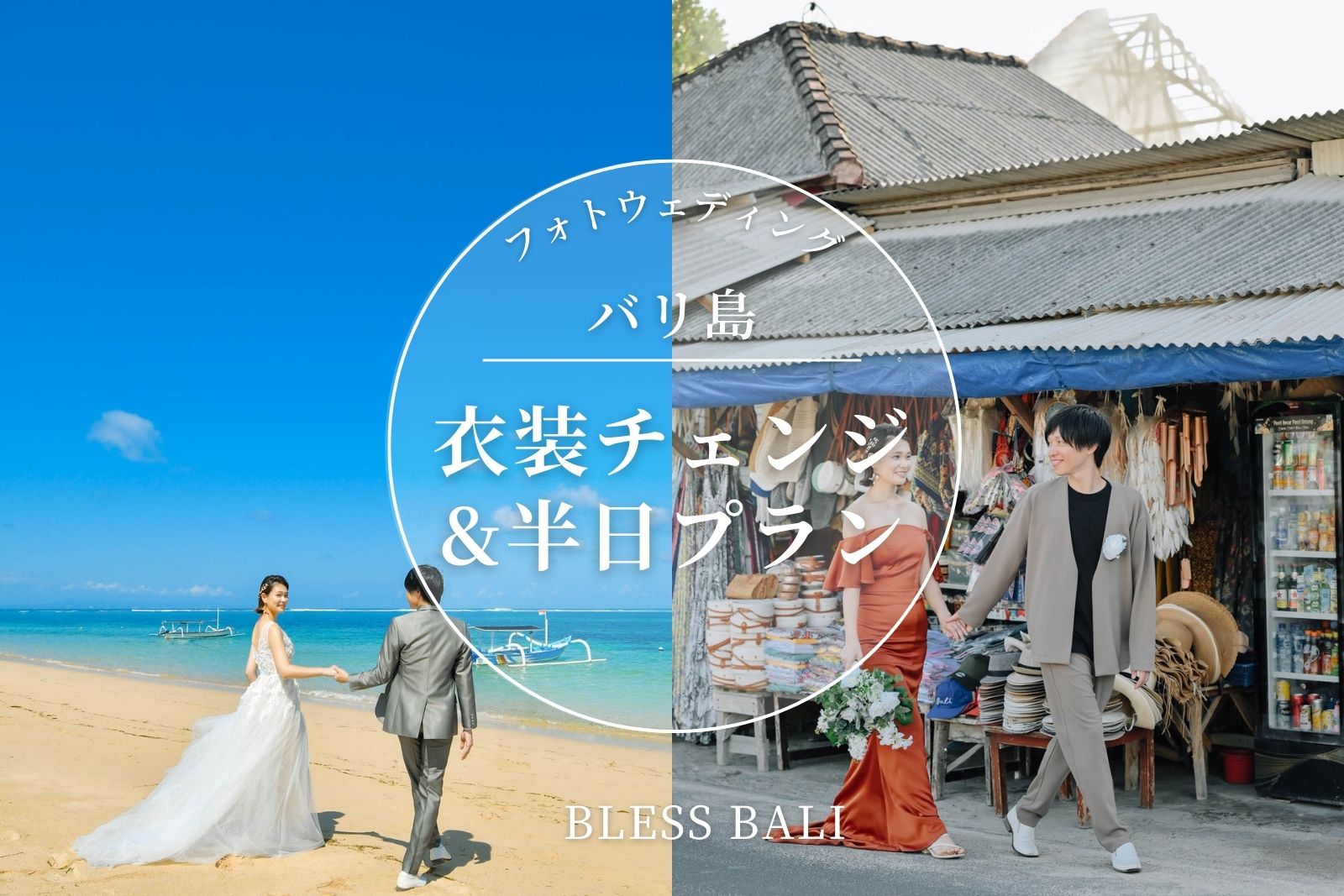 バリ島でウェディングフォトを撮りたい方に人気なのが、“ビーチ・街中・サンセット” の3ロケーションを1日で巡る半日フォトツアー。今回ご紹介するT&A様の撮影でも、バリ島らしい景色を凝縮した充実のフォトセッションとなりました。