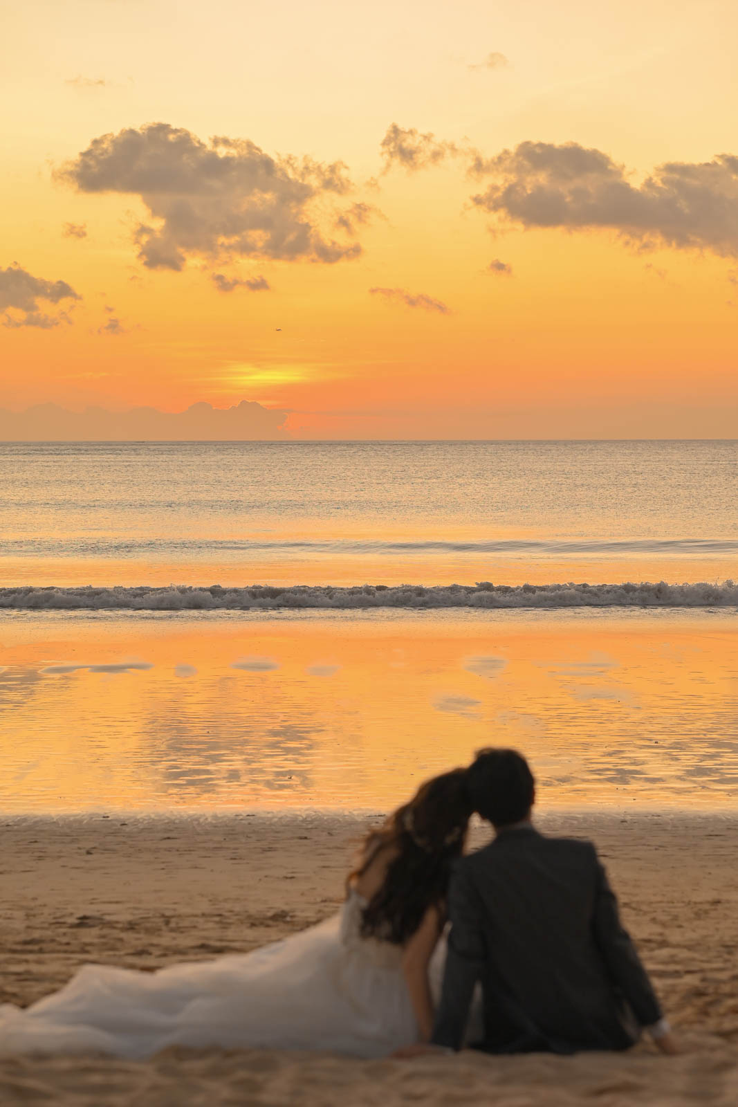 ◎場所:バリ島 ジンバラン ◎特徴:夕日の名所、白砂、ビーチ以外のロケーションは少ない ◎ジンバランビーチ沿いのホテルで撮るフォトプランもおすすめです! インターコンチネンタル・プラン